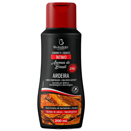 O Aromas do Brasil Sabonete Íntimo Aroeira Bio Instinto possui sistema pH Control, que mantém o pH íntimo equilibrado por 24 horas. Sua fórmula aprovada por Médicos Dermatologista e Ginecologista, acompanha o dinamismo da mulher brasileira diariamente, durante o período menstrual e após depilações.
